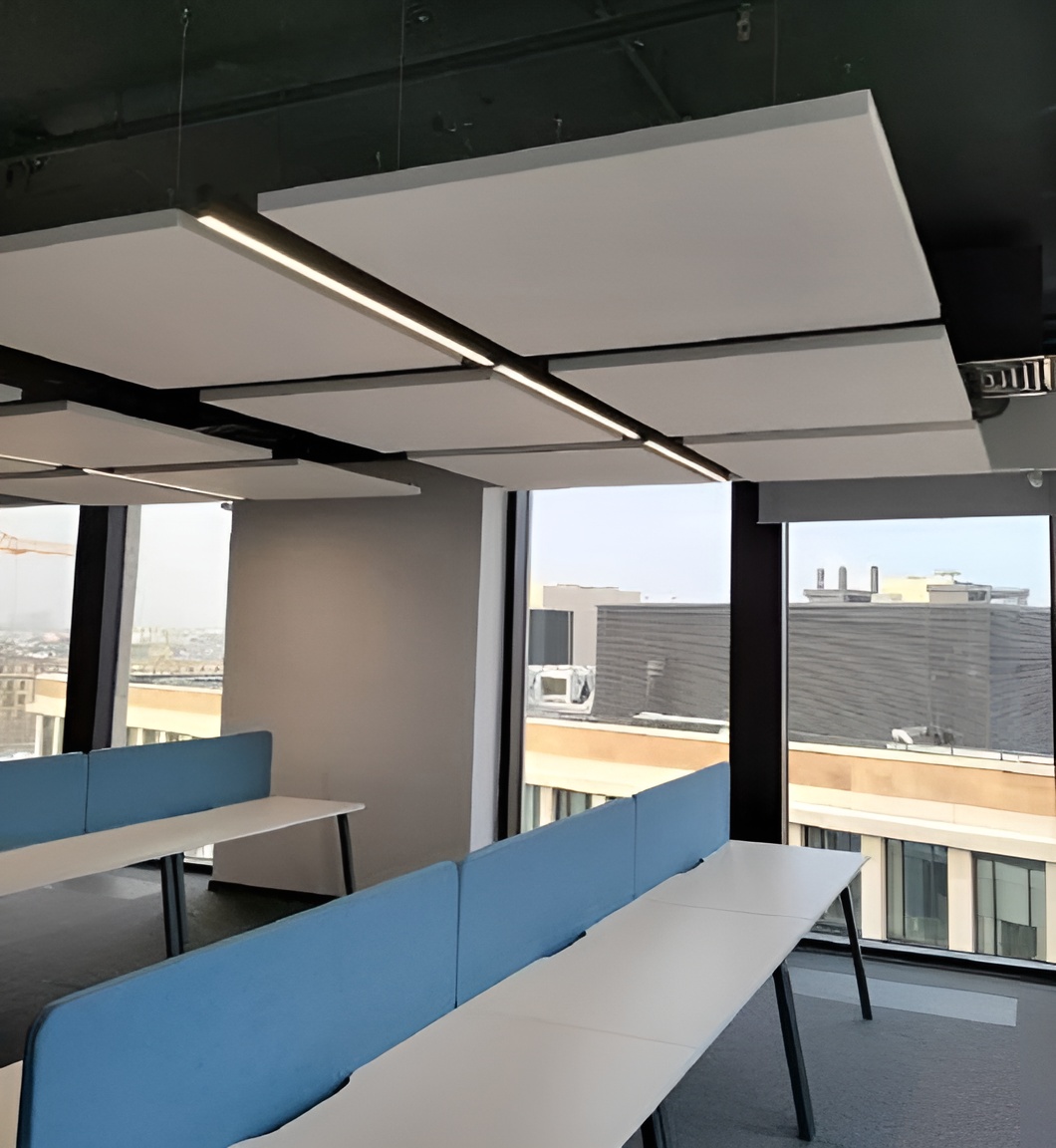 - Акустические потолочные панели из стекловолокна и войлока